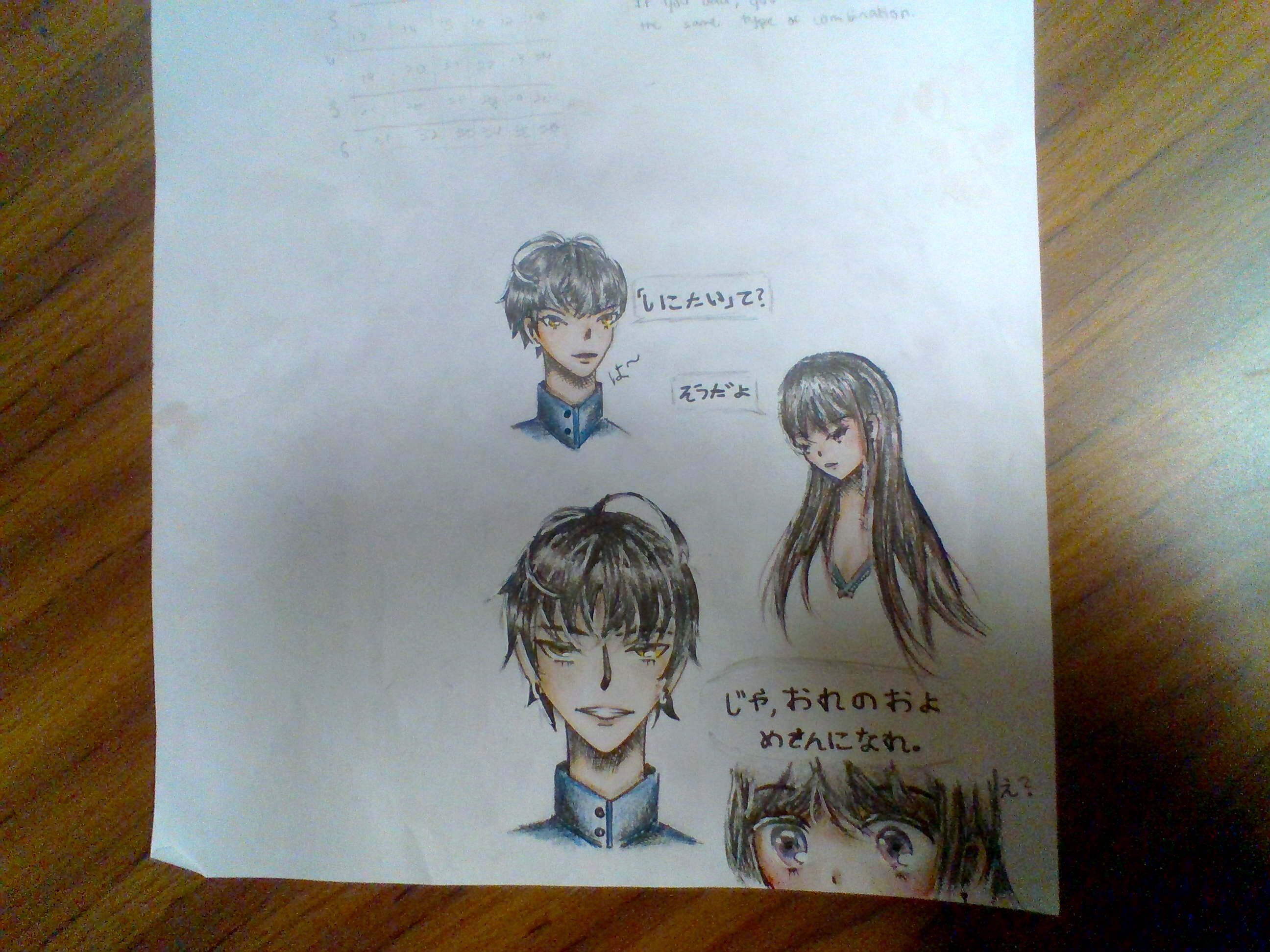 So, this is a skit that I drew and colored a while ago (it was on the back of my math paper Lol). I wanted to draw a scene that would be in a shoujo manga and just wanted to share this here. ^-^ BTW, this was my first time using a white gel pen so sorry if I used it horribly. ;-; The text are in Japanese. I won’t translate it because it’s kind of embarrassing haha. (I’m trying to learn Japanese so you may see it on my drawings sometimes)